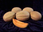 Crescent Moon : A 74 day sutured hybrid melon with good powdery mildew tollerance. Fruit are large, generally 6-7 pounds. This hybrid has topped yield trials due to it size, and has the classic musk flavor of yester year.
